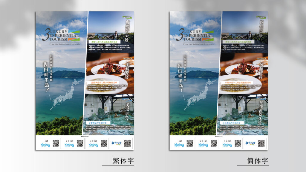 繁体字・簡体字それぞれの言語圏において、日本の魅力が最も効果的に伝わるよう、Webサイト、プロモーション動画、チラシを完全多言語対応で制作。視覚的な「シズル感」と論理的な「信頼感」の両立を図りました。